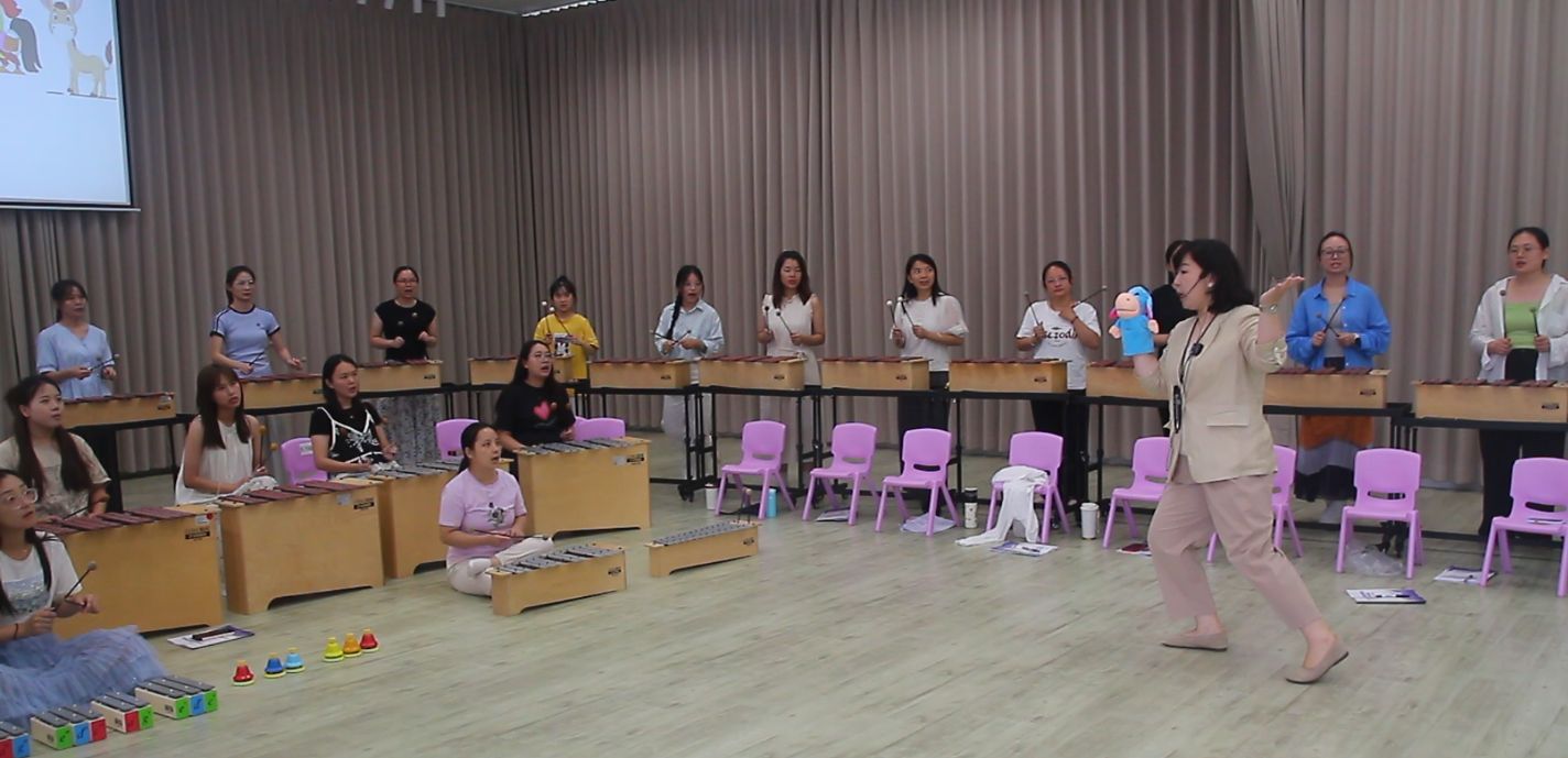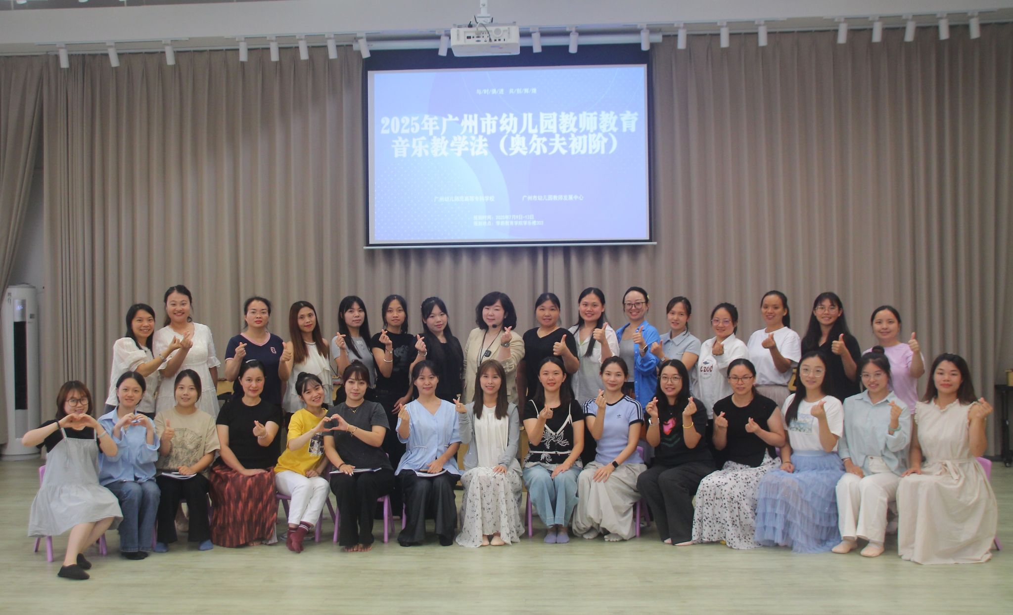 2025年7月9日至13日,广州幼儿师范高等专科学校培训中心联合广州市幼儿园教师发展中心成功举办广州市幼儿园教师音乐教学法培训-奥尔夫教师教育初阶课程第二期。本次培训学员来自广州市各区 30 名幼儿园园长及骨干教师,共完成 40 课时的系统学习。