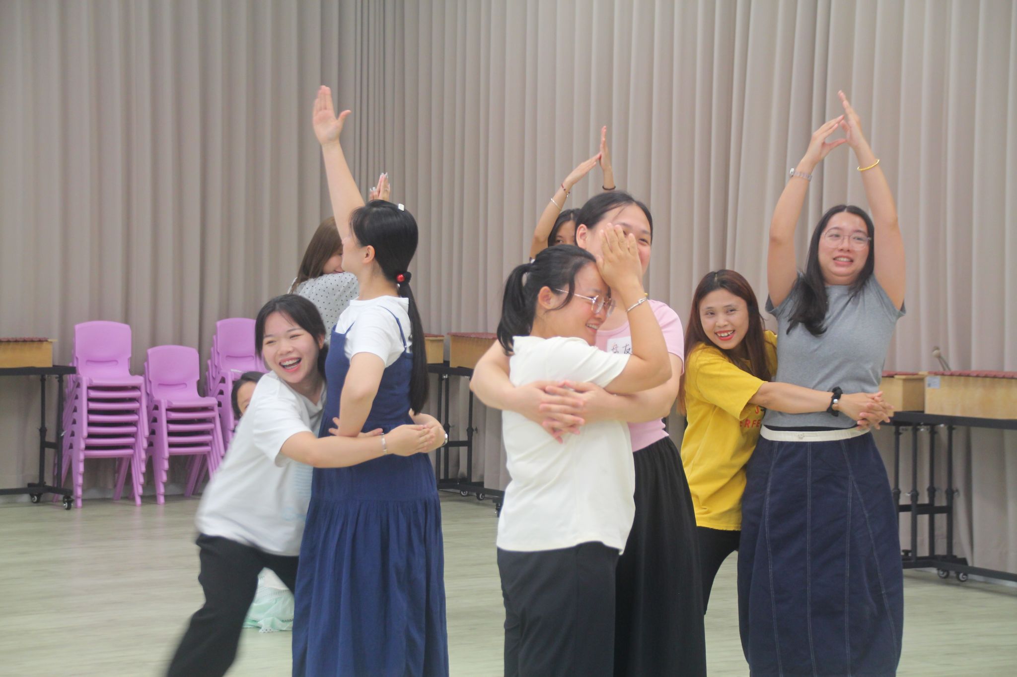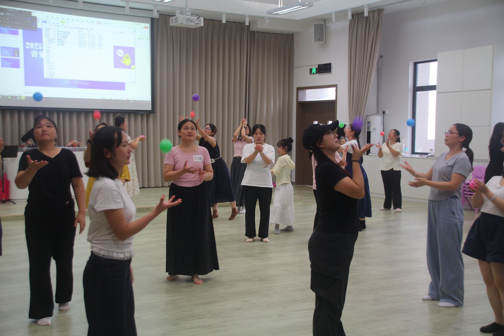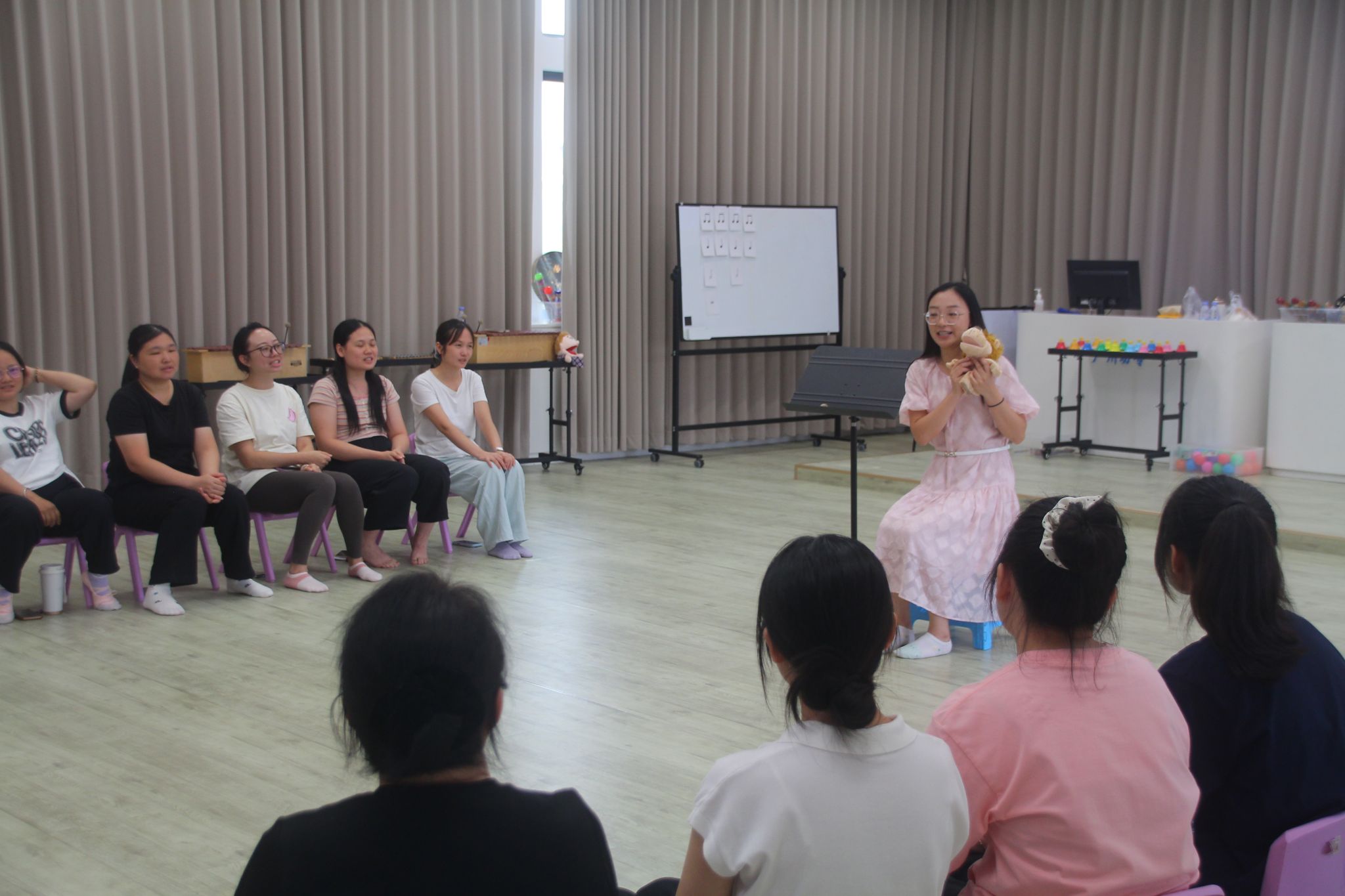 本次培训聚焦实践应用能力的培养,创新采用沉浸式体验、全体参与实操、主题任务小组协作等多元形式,并融入主题活动设计、教学情景模拟等环节,让学习过程更具有代入感和实践性。例如在同伴教学练习中,学员分别化身“教师” 与 “幼儿”,围绕指定音乐素材展开完整活动设计研讨与模拟授课。通过 “现场授课 — 集体评议 —迭代优化”的闭环流程,重点训练情景设计故事化、教学指令清晰化、互动反馈及时化、活动衔接游戏化等核心能力。这种以学员为主体的实操模式,让每个人都能沉浸式体验教学全流程,在亲身体验中发现问题、破解难题,从而高效提升教学方法的迁移与应用能力,真正实现从理论认知到实践落地的有效转化。