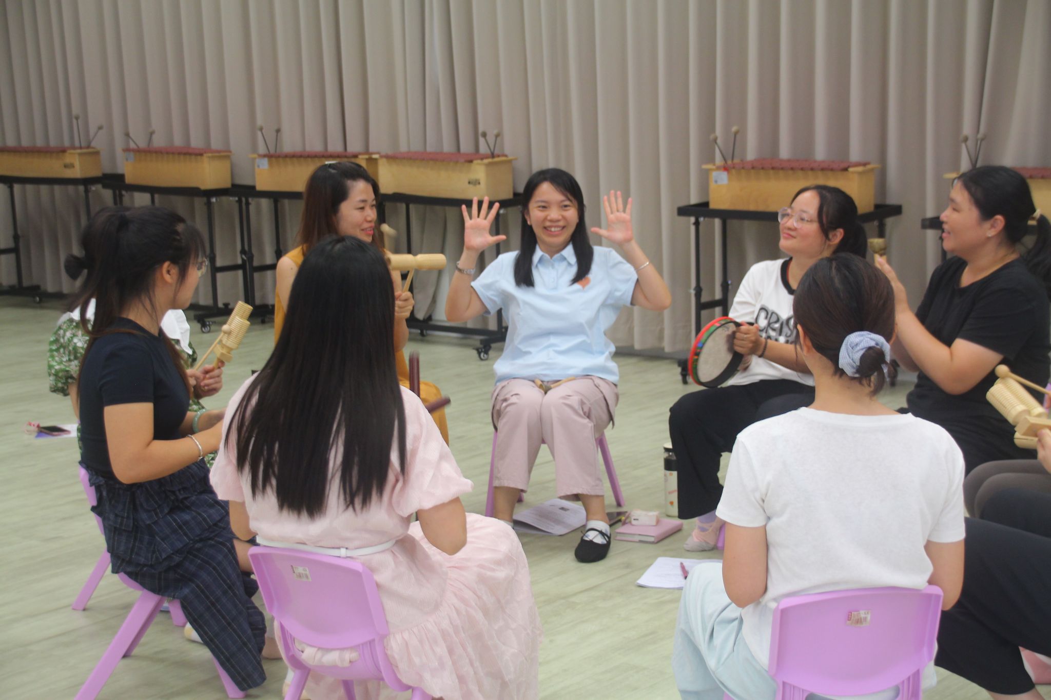 培训结束后,学员们纷纷表示受益匪浅。来自天河区珠江新城猎德幼儿园的石锐老师分享道:“节奏语言模块让我惊喜,原来儿歌里的字词能转化成这么有趣的节奏游戏,孩子们肯定会喜欢!”来自增城区朱村街东城幼儿园的施琦园长则感慨道:“模拟课堂让我们能大胆试错、反复优化,蔡霞老师的精准指导更是点醒了我,解决我许多教学中的困惑,这种沉浸式学习比单纯听理论高效太多!”来自天河区辰康幼儿园的周静宜老师提到:“奥尔夫教学法的魅力在于让音乐真正“活”起来,回去后一定要把这些方法用到课堂上,让孩子们在快乐中感受音乐之美。”多位学员提到,音条乐器编创模块打破了“乐器教学难”的固有认知,掌握了“从简单到复杂”的递进式教学方法。大家对后续的奥尔夫教师教育中阶、高阶课程充满了期待。