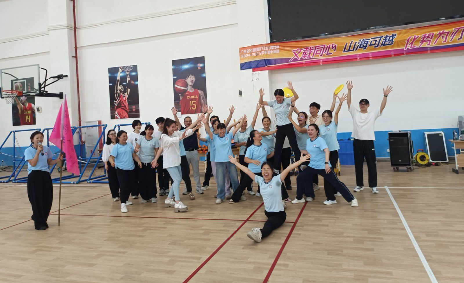 7月26日下午,室内篮球场上开展了热闹非凡的团队历奇训练。在专业团建教练的带领下,老师们参与了飞盘九宫格、传盘射篮、腰旗橄榄球等丰富项目,从“活力健身操”破冰暖场到团队对抗赛凝心聚力,大家在欢笑与协作中增进信任与互动,充分展现了广州文化集团人的活力与精神面貌。活动不仅缓解了学习压力,更强化了团队协同意识,为今后园所间的合作打下良好基础。